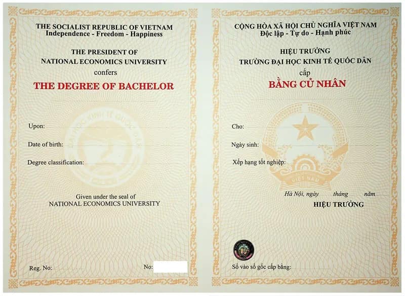 Tốt nghiệp chương trình, sinh viên nhận bằng Cử nhân từ Đại học Kinh tế Quốc dân – bằng được Bộ GD&ĐT công nhận, có giá trị pháp lý đầy đủ trong và ngoài nước. Đây là nền tảng quan trọng giúp người học thăng tiến nghề nghiệp, chuyển đổi ngành hoặc quay về Việt Nam làm việc.